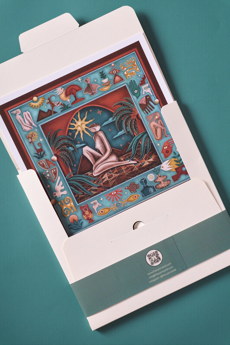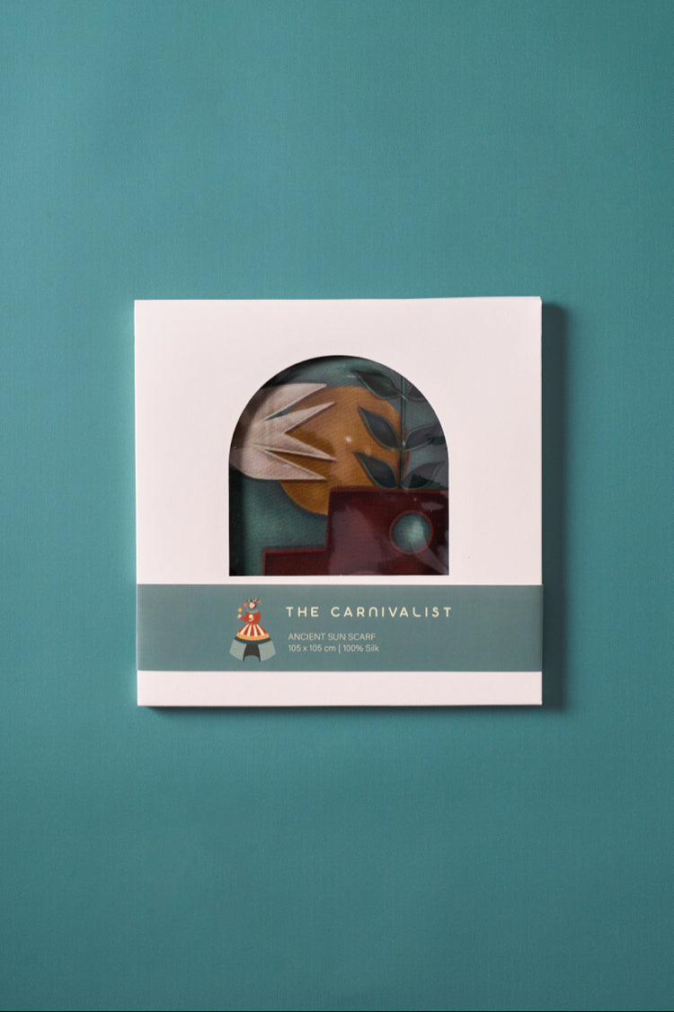The specially designed scarf box also includes a 27 x 27 cm high-resolution art print of the design on canvas paper. This makes the scarf not just an accessory, but also a collector's item.