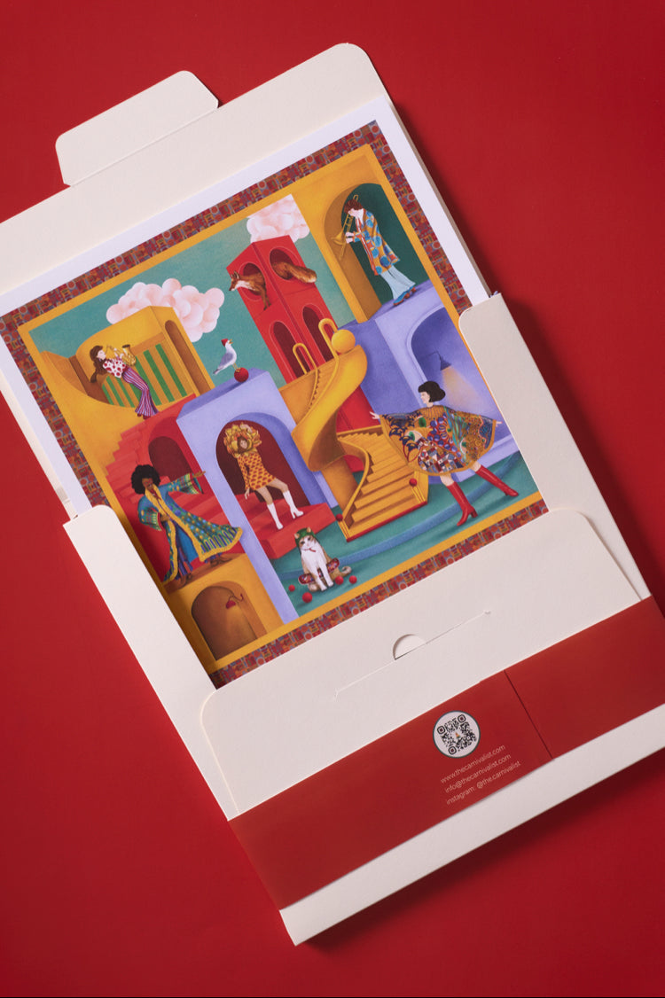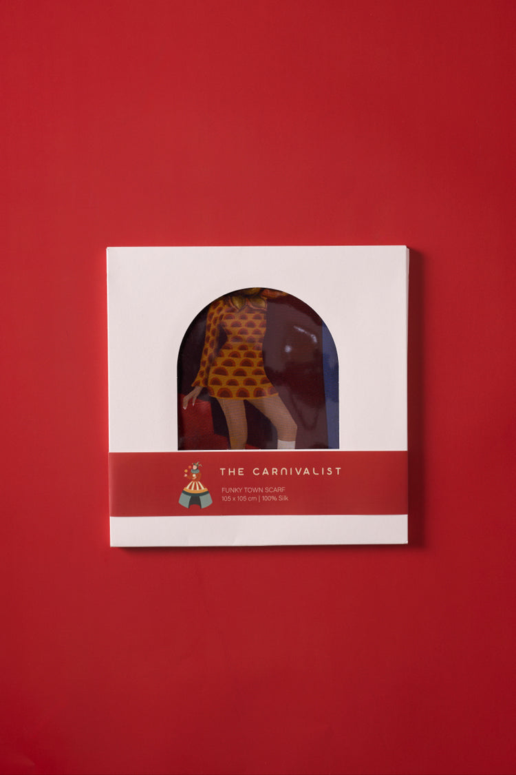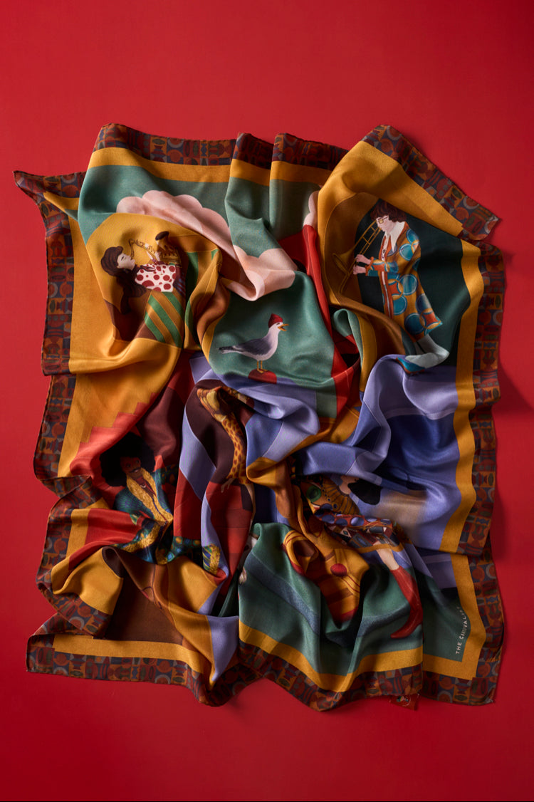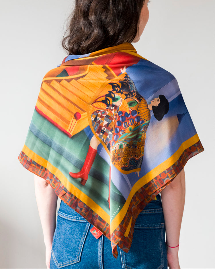 The specially designed scarf box also includes a 27 x 27 cm high-resolution art print of the design on canvas paper. This makes the scarf not just an accessory, but also a collector's item.
