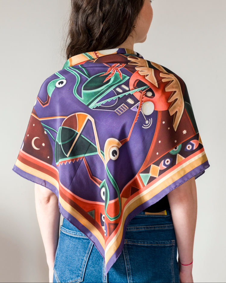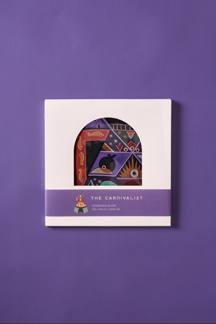 The specially designed scarf box also includes a 27 x 27 cm high-resolution art print of the design on canvas paper. This makes the scarf not just an accessory, but also a collector's item.