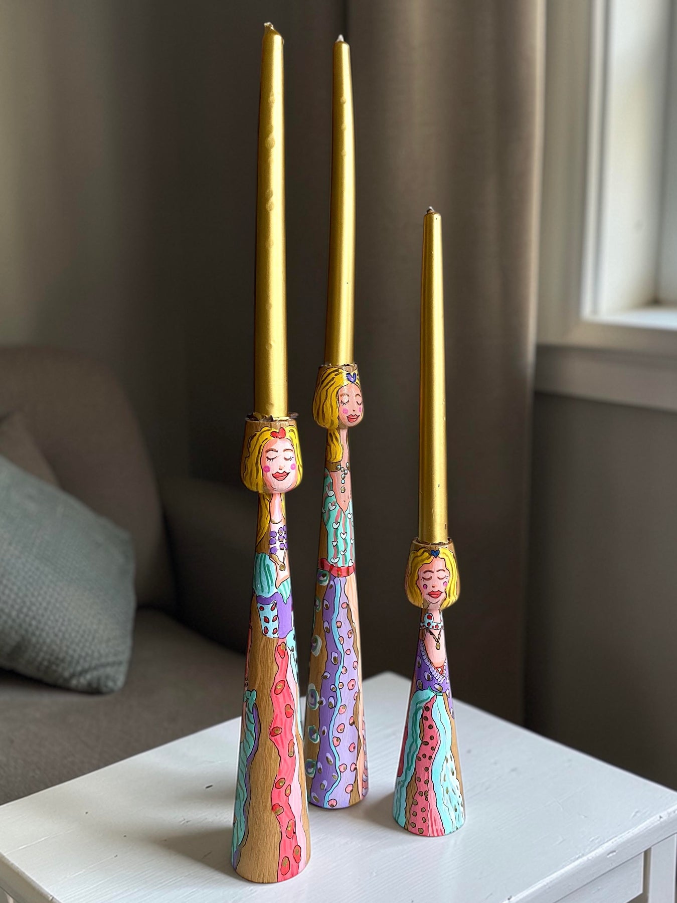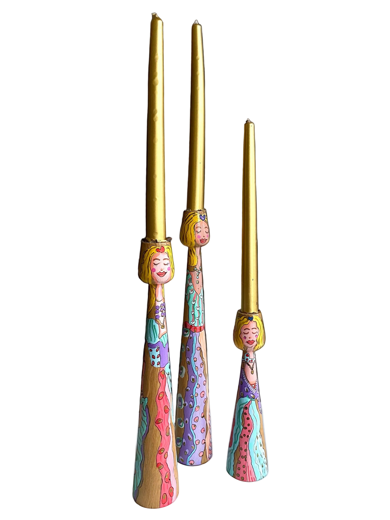 Protected with a semi-matte natural varnish. Sold as a set of three.
