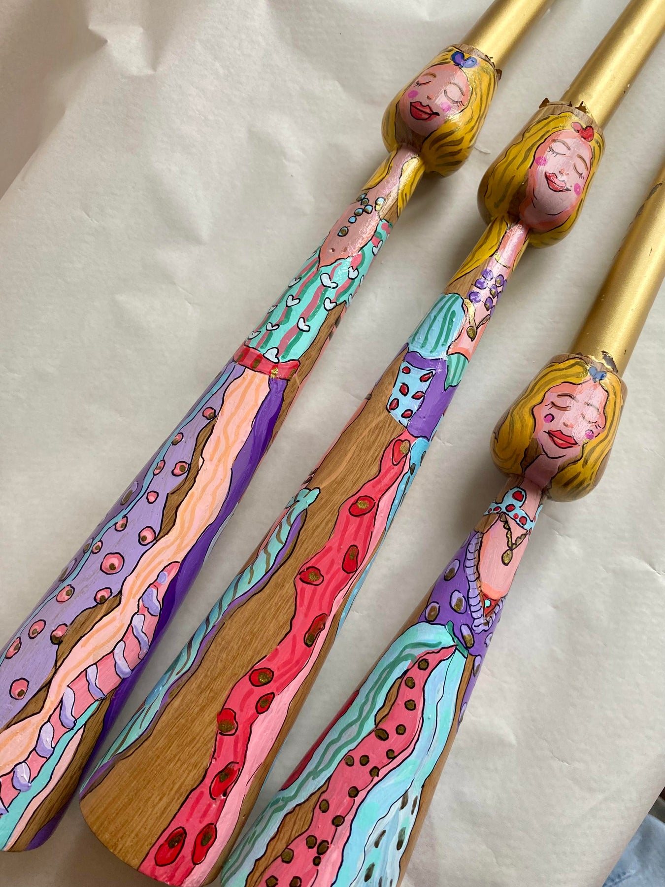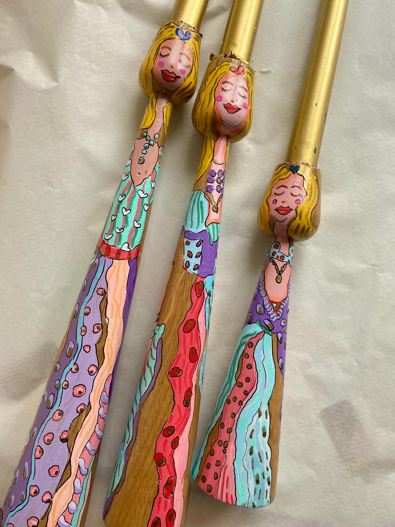 Hand-shaped from solid oak wood. The solid oak wood is meticulously patterned with acrylic paint.