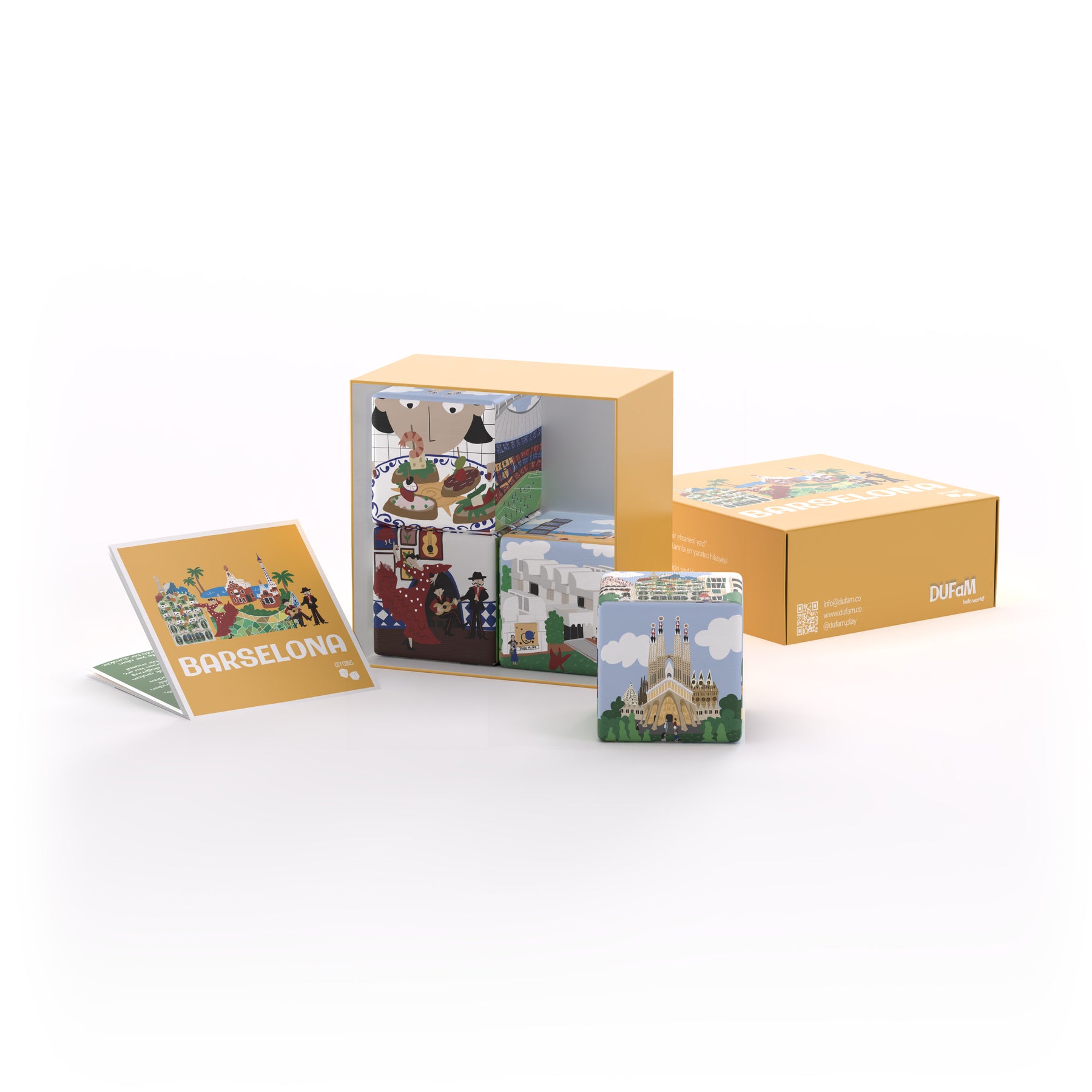Throw the cubes, each filled with unique illustrations reflecting the spirit of the city, and create your own unique story with the images that appear on top.