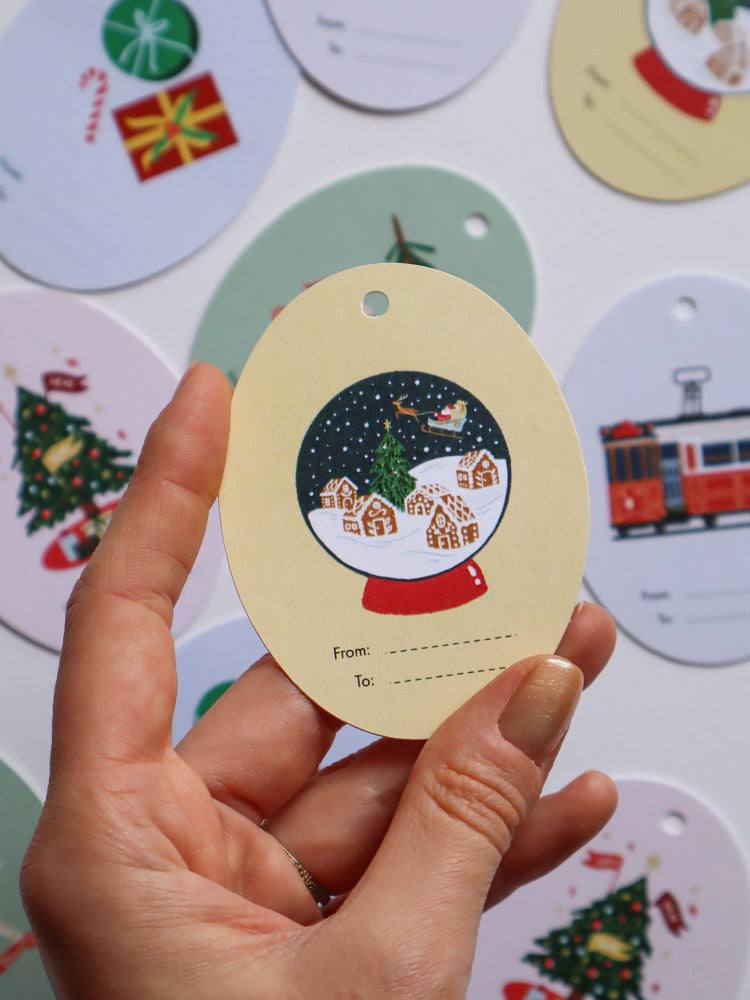 5 gift tags with original, digital illustrations