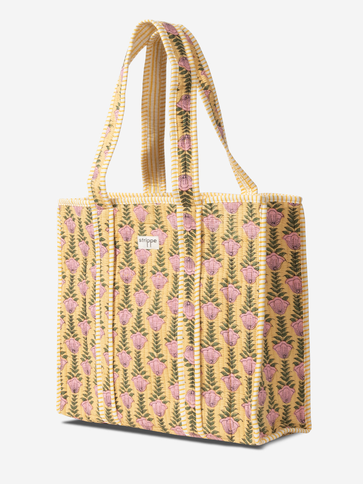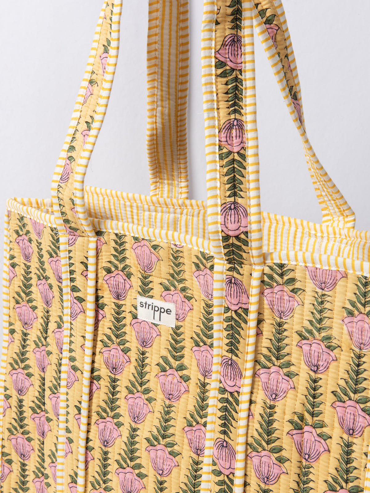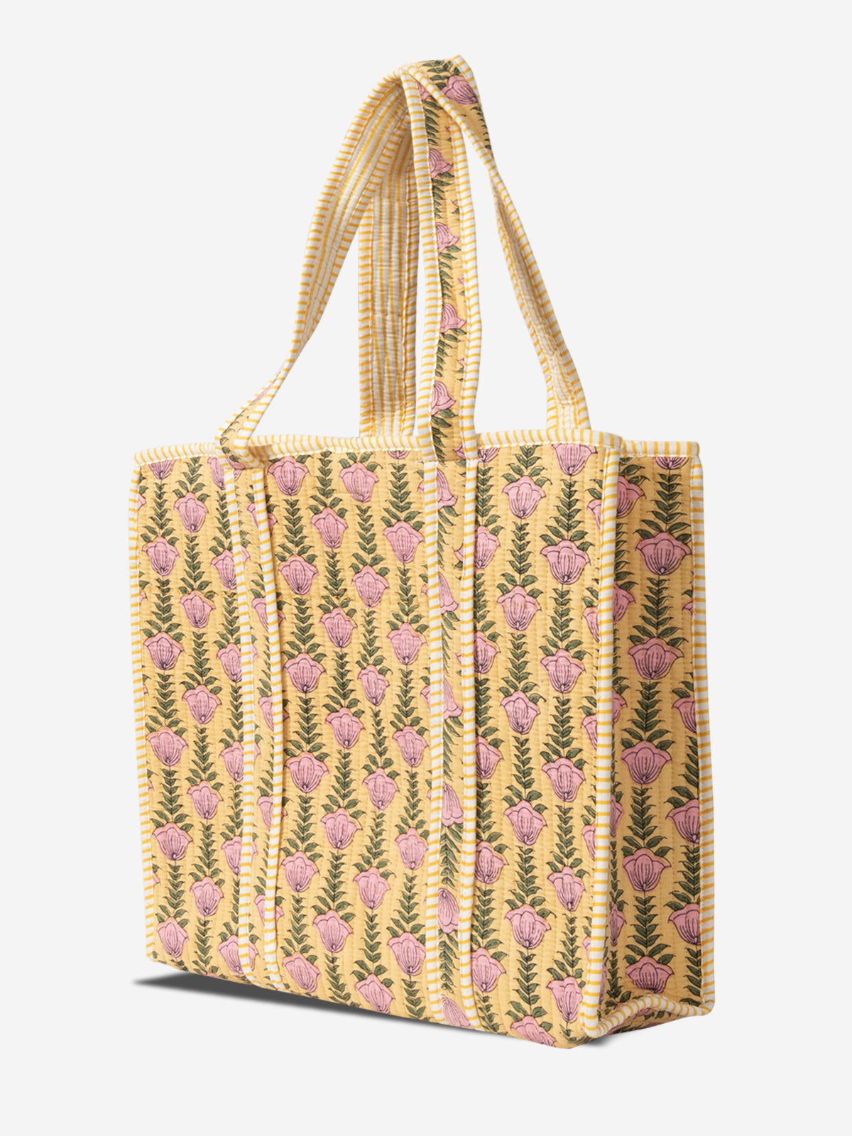 ZYRA - Pink and Yellow Striped Shopping Bag