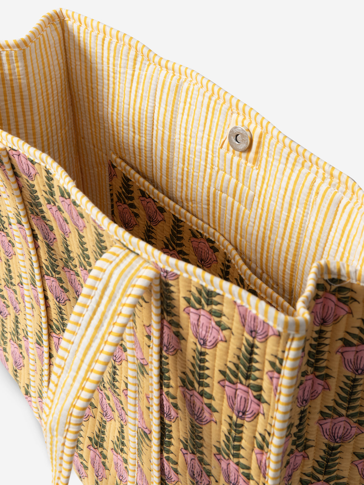 The snap closure detail at the opening helps you carry your belongings securely.