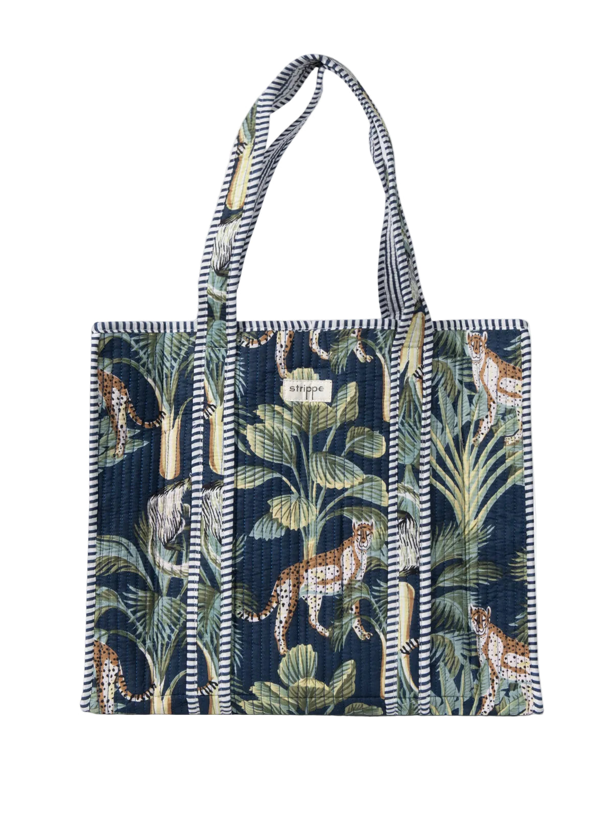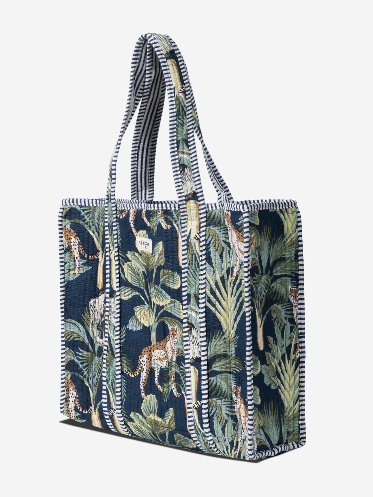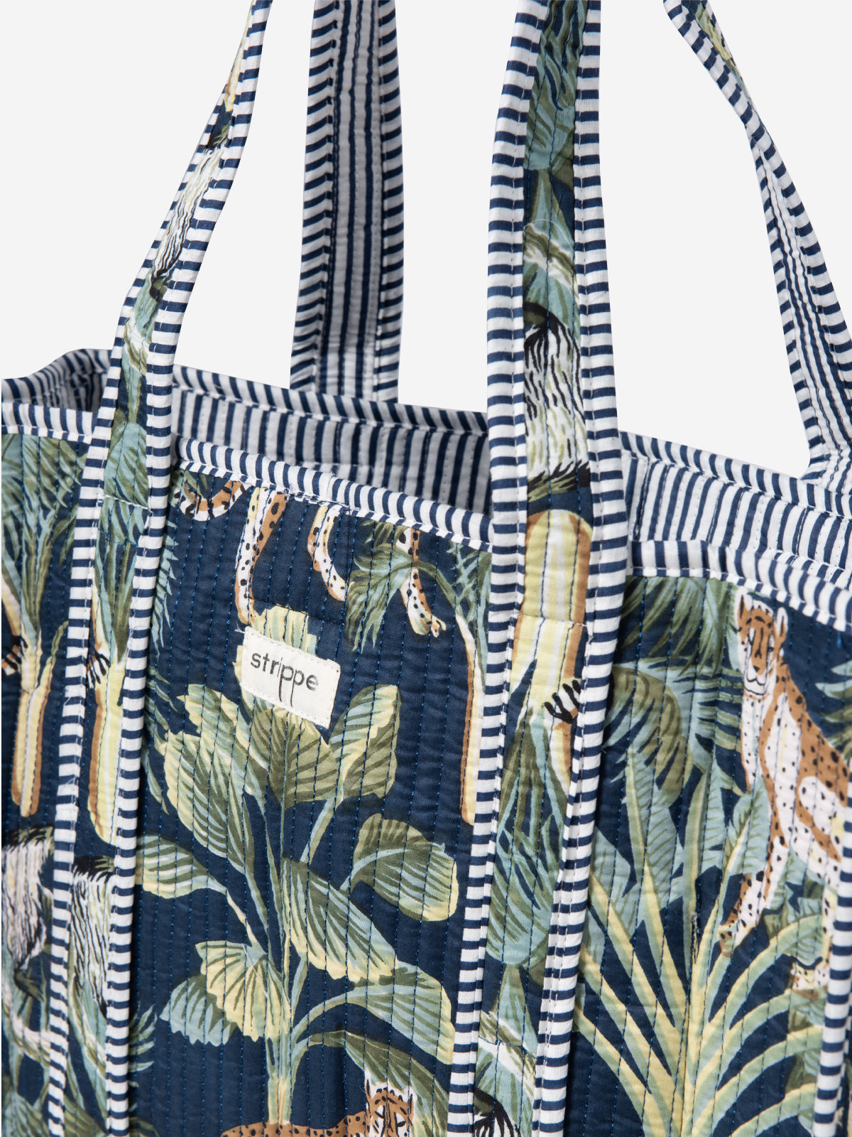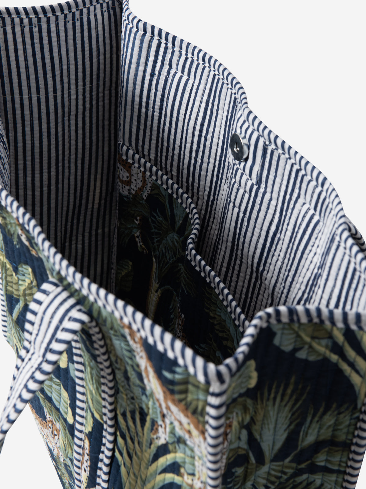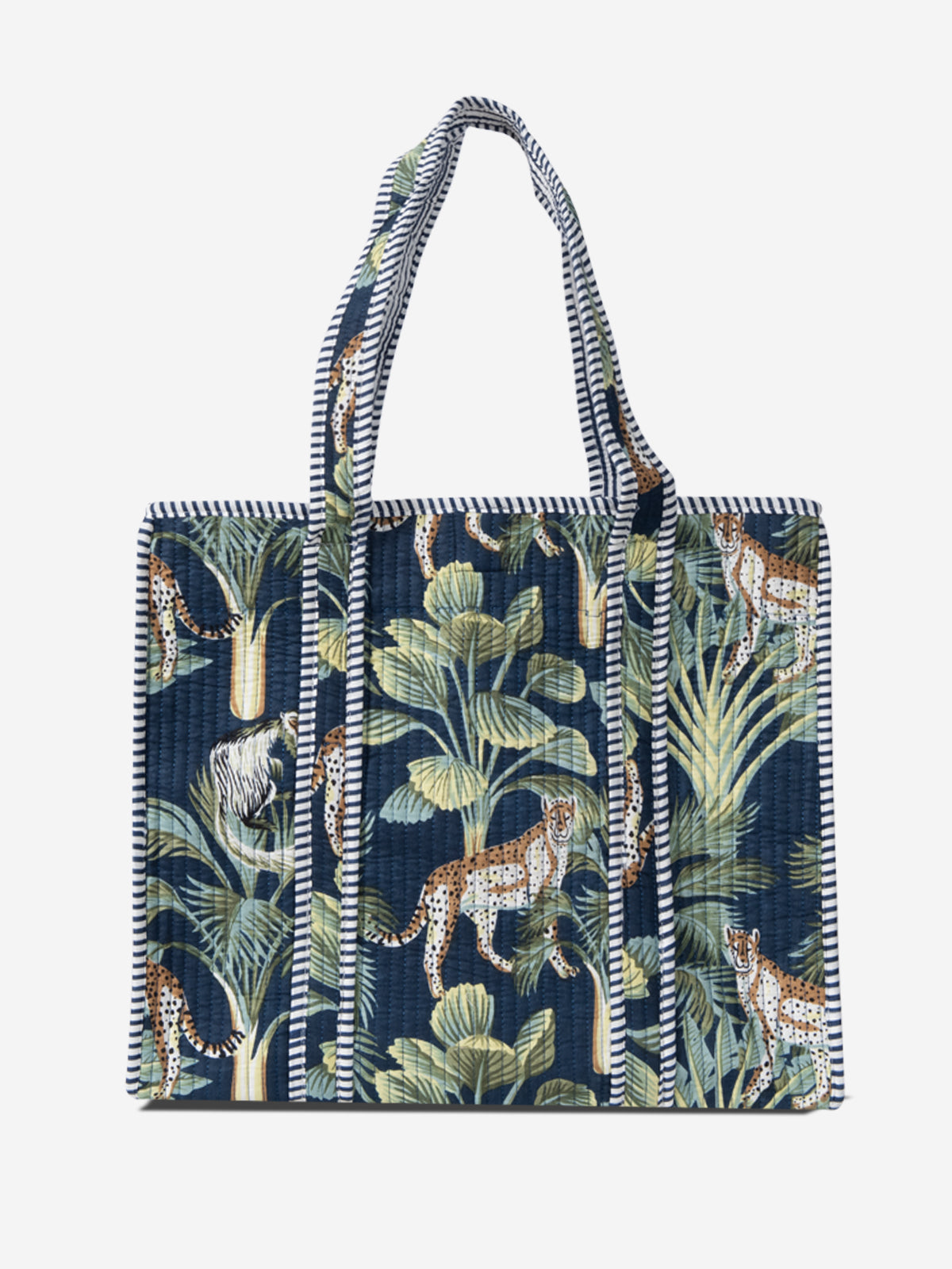 WILDWOOD - Leopard Forest Pattern Navy Blue Cotton Casual Shoulder Bag