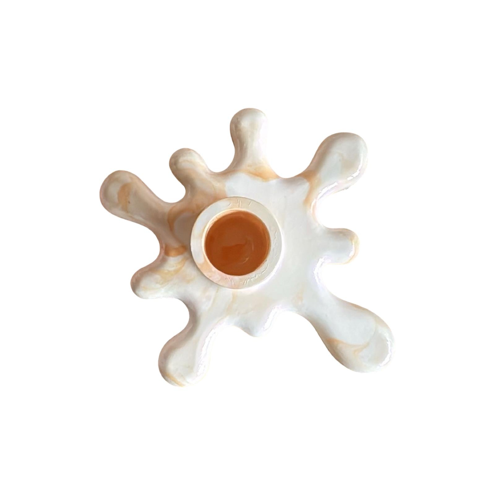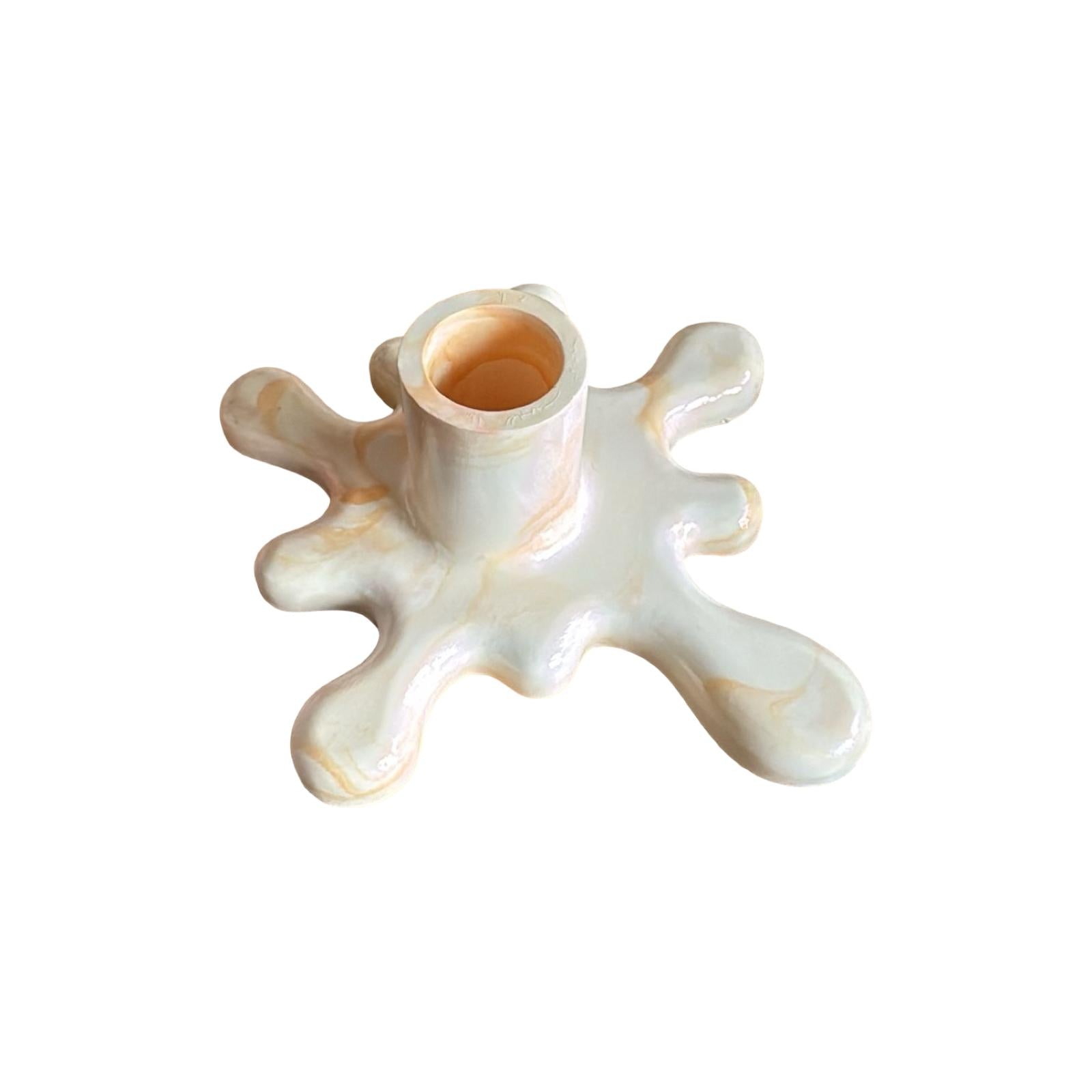 Designed with a fluid form and marble-like color transitions, this candlestick is created to add a soft yet striking energy to its surroundings.