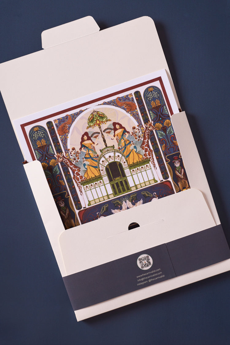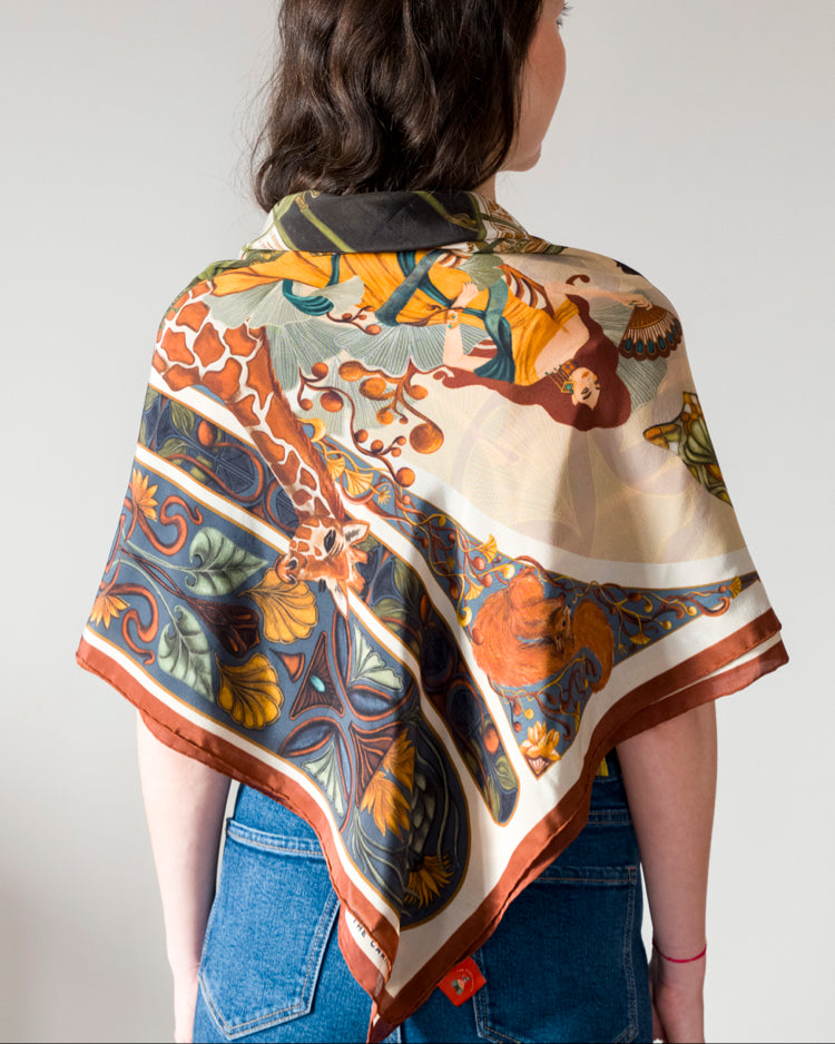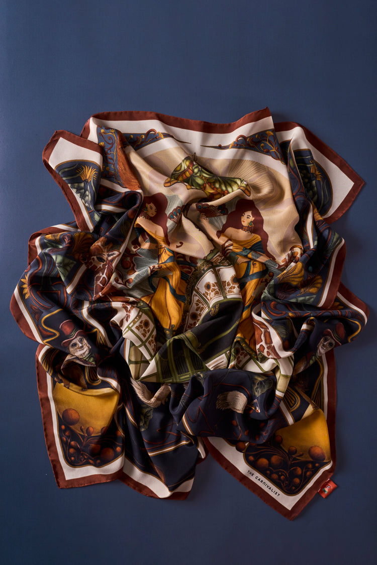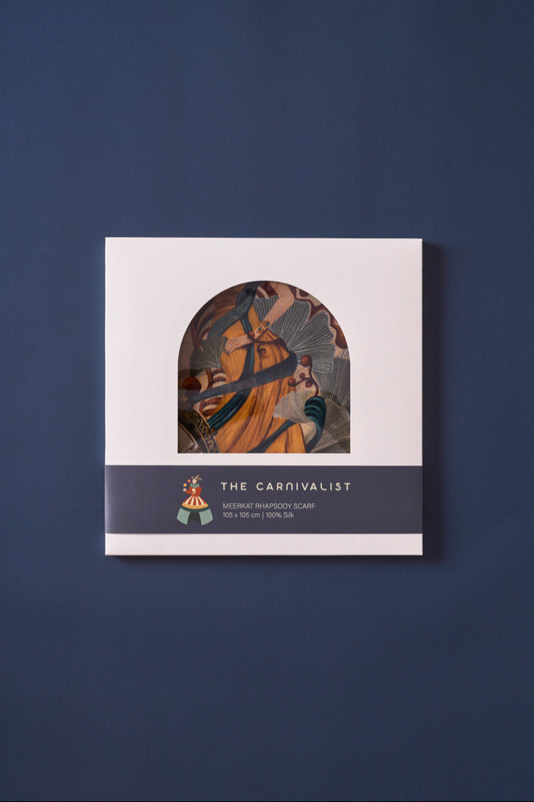 Özel olarak tasarlanmış eşarp kutusu, tasarımın 27 x 27 cm boyutlarında yüksek çözünürlüklü tuval üzerine basılmış bir sanat baskısını da içeriyor. Bu da eşarbı sadece bir aksesuar değil, aynı zamanda bir koleksiyon parçası haline getiriyor.