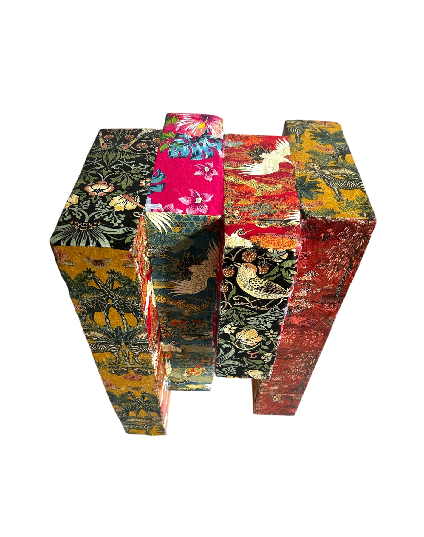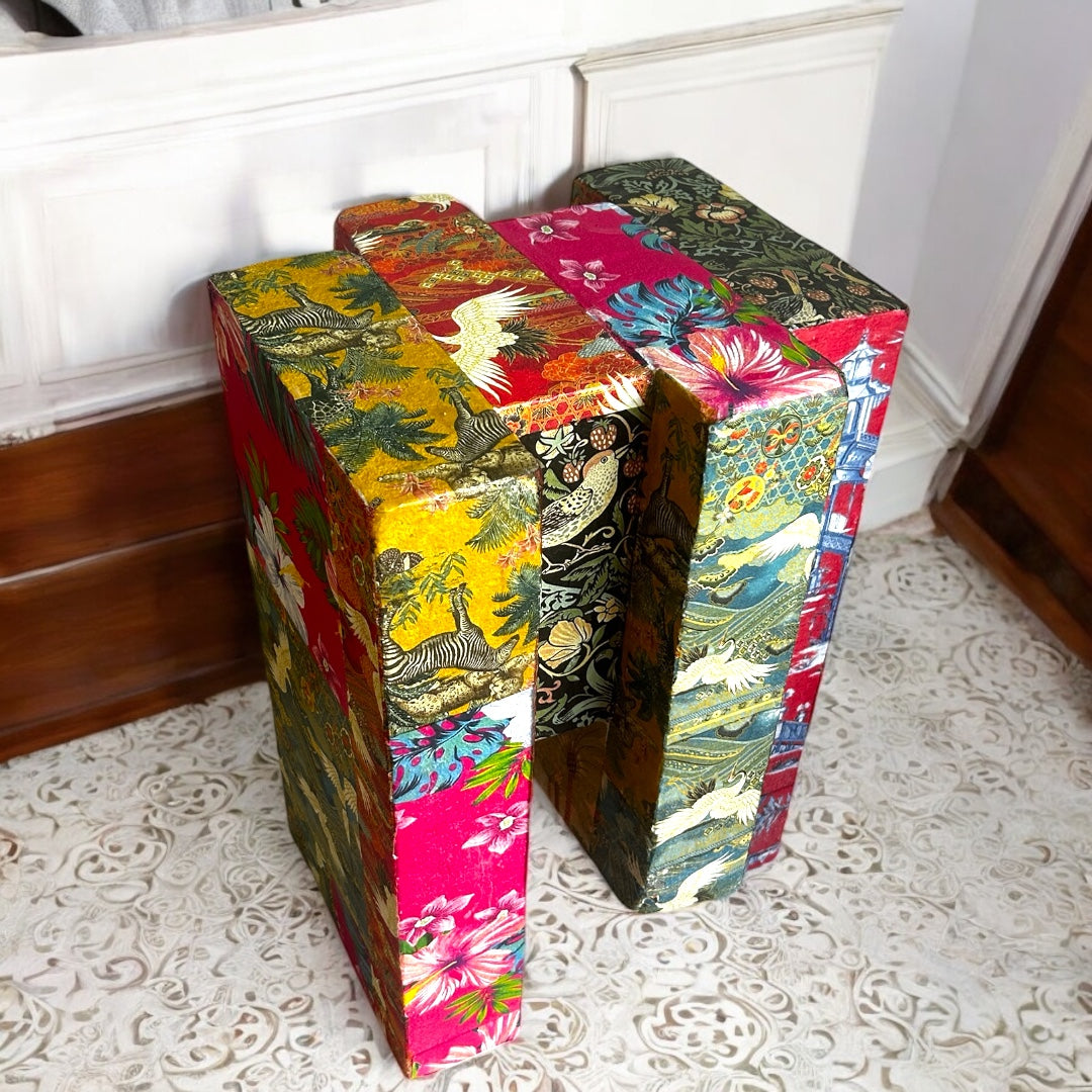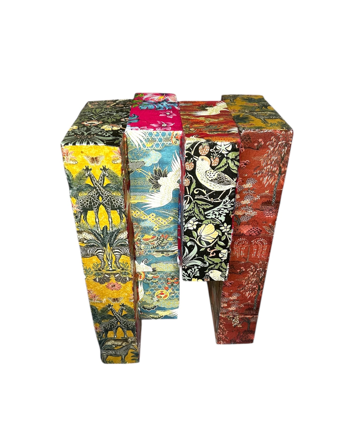 Özel olarak tasarlanan bu sehpa, beton bir taban üzerine seramik kil ile kaplanmış olup, üzerinde baskı motifi yer almaktadır.