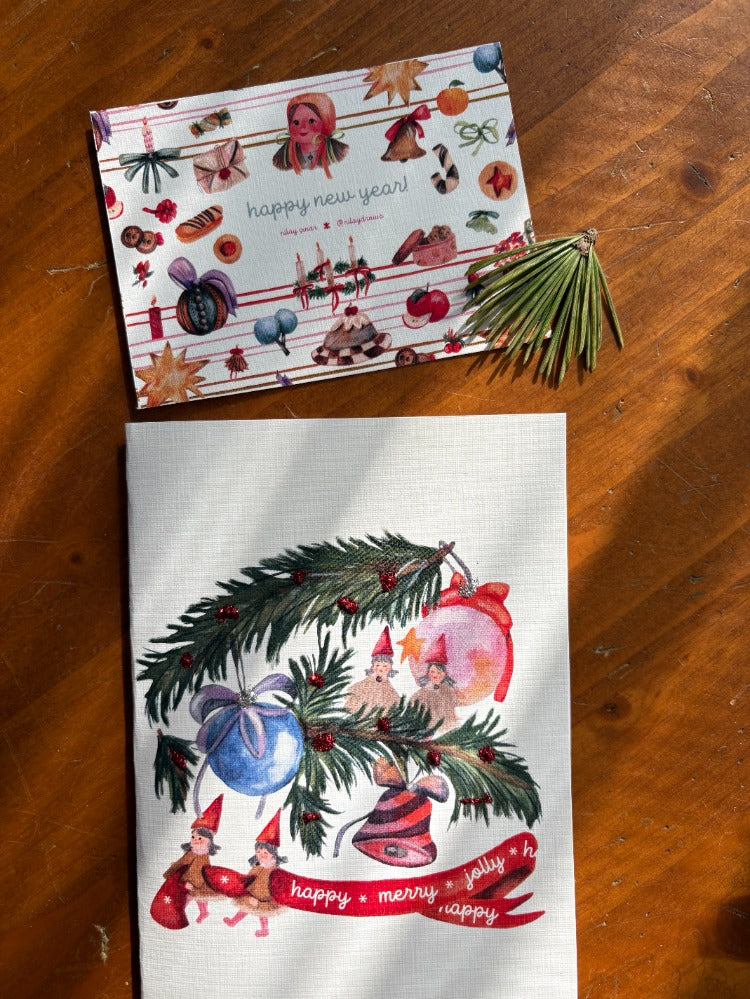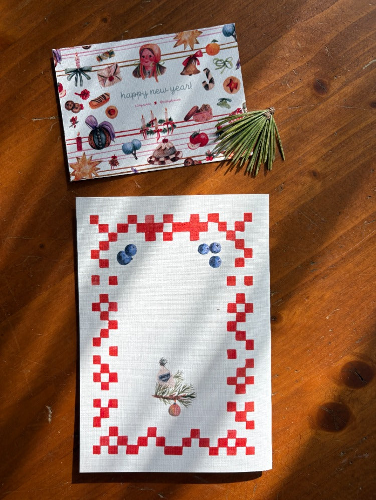 2026 Yeni Yıl kart serisinden bu illüstrasyon, katlandığında bir A4 kağıdının yaklaşık 1/4'ü kadardır. Tuval üzerine basılmış olup bir zarfla birlikte gelir. İçine kalemle dilediğiniz gibi yazabilirsiniz.
